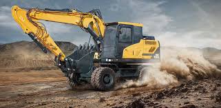 This is a Hyundai wheeled excavator, likely a model such as the HW140A. Wheeled excavators are highly maneuverable and versatile machines popular for utility and street maintenance work.